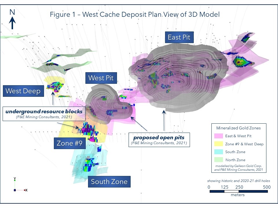 TORONTO: September 8, 2021. Galleon Gold Corp. (TSXV: GGO) (the “Company” or “Galleon Gold”) is pleased to announce the release of a National Instrument 43-101 (“NI 43-101”) updated Mineral Resource Estimate for its 100% owned West Cache Gold Project, Timmins, Ontario (“West Cache” or the “Project”).