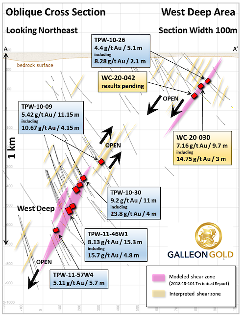 Additional drilling in the area around hole WC-20-030 is planned as part of the ongoing 2020 drill program. In addition to the drill results and cross section provided in this release below, the Company website, www.galleongold.com provides further information on the current drill results.