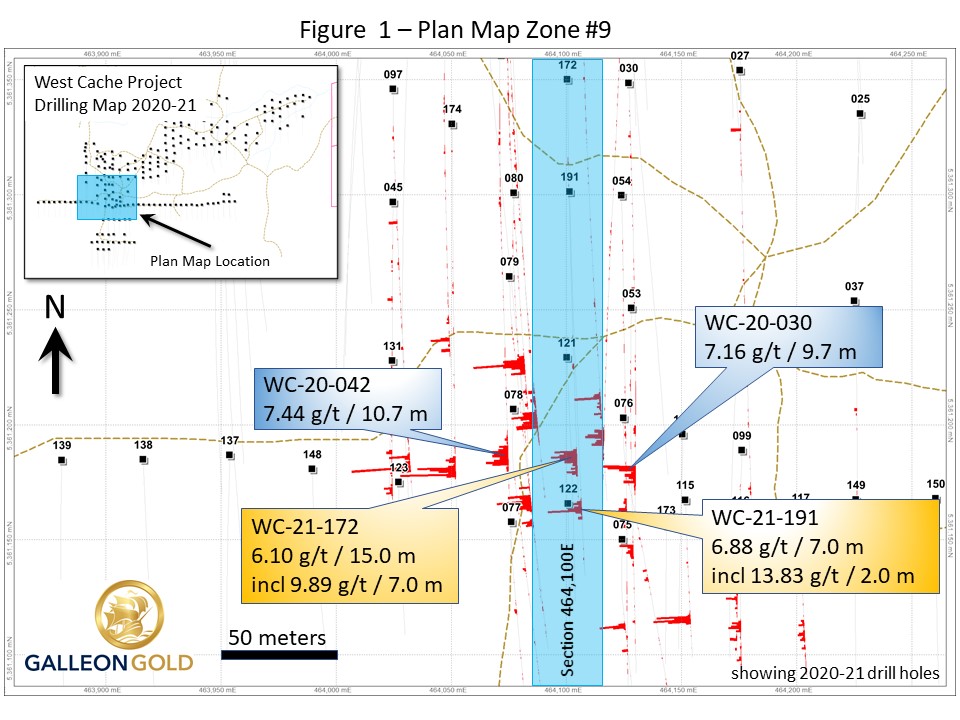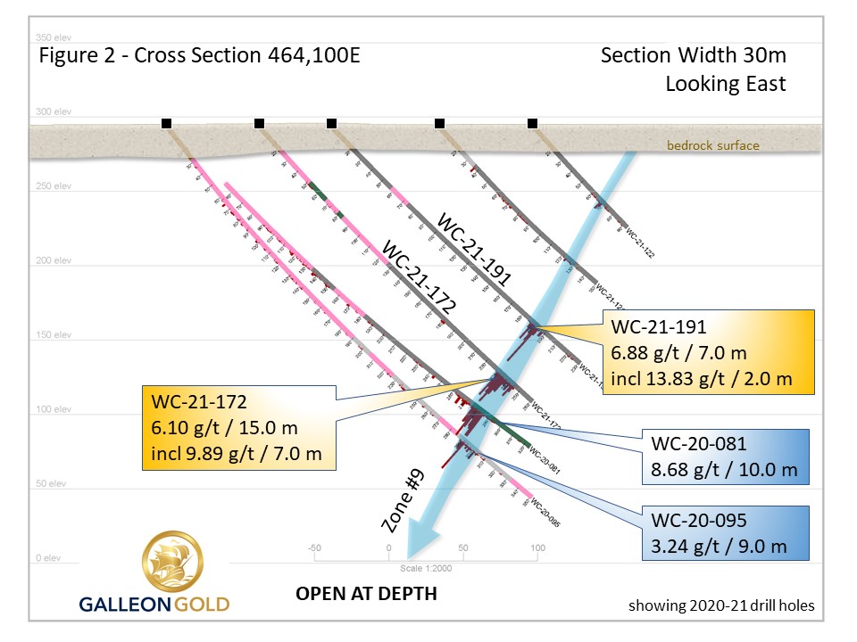 TORONTO: April 21, 2021. Galleon Gold Corp. (TSXV: GGO) (the “Company” or “Galleon Gold”) is pleased to announce additional Zone #9 intercepts from its 100% owned West Cache Gold Project, Timmins, Ontario.