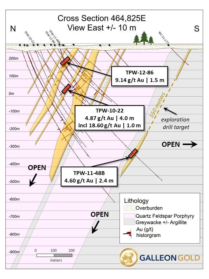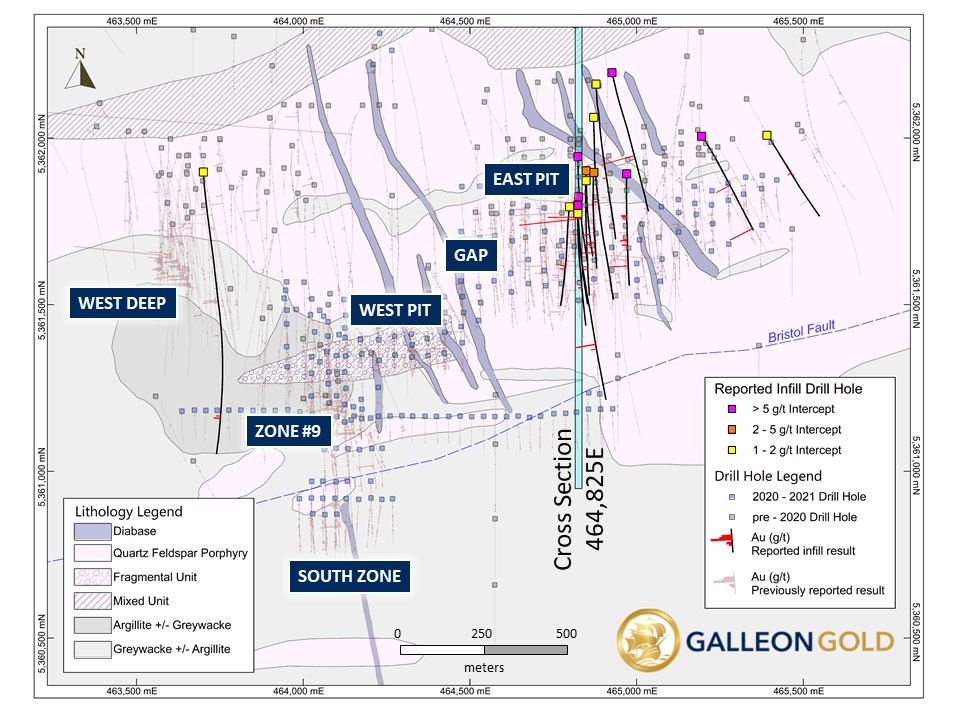 TORONTO: November 10, 2021. Galleon Gold Corp. (TSXV: GGO) (the “Company” or “Galleon Gold”) is pleased to announce assay results from the Company’s ongoing re-evaluation of historic core at its 100% owned West Cache Gold Project, Timmins, Ontario (“West Cache” or the “Project”). This re-evaluation includes selective re-logging and assaying of previously un-sampled core from the 2009-2017 drill programs. Results from this work will provide additional data and support for the gold system currently being evaluated in support of the PEA.