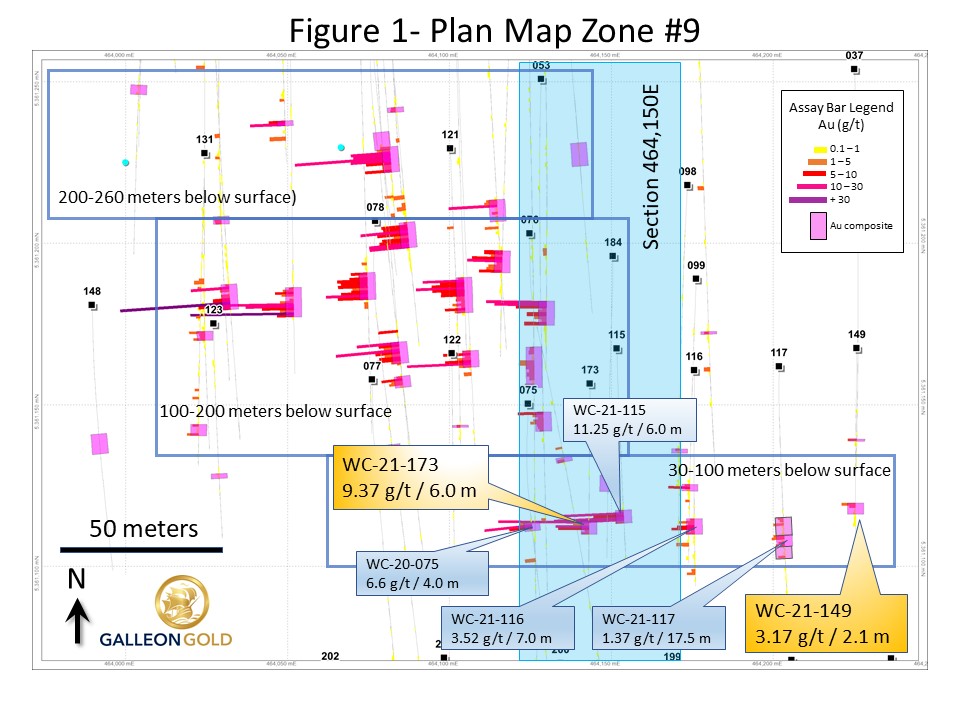 TORONTO: April 27, 2021. Galleon Gold Corp. (TSXV: GGO) (the “Company” or “Galleon Gold”) is pleased to announce additional Zone #9 intercepts from its 100% owned West Cache Gold Project, Timmins, Ontario.